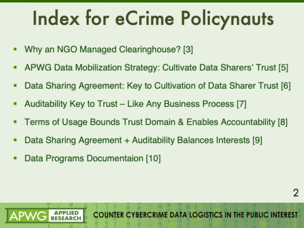 eCX's data mobilization strategy is built on data sharers' trust, a resource cultivated by the venerable instrumentation of contract agreement and audibility - Innovations, APWG leaves to its members